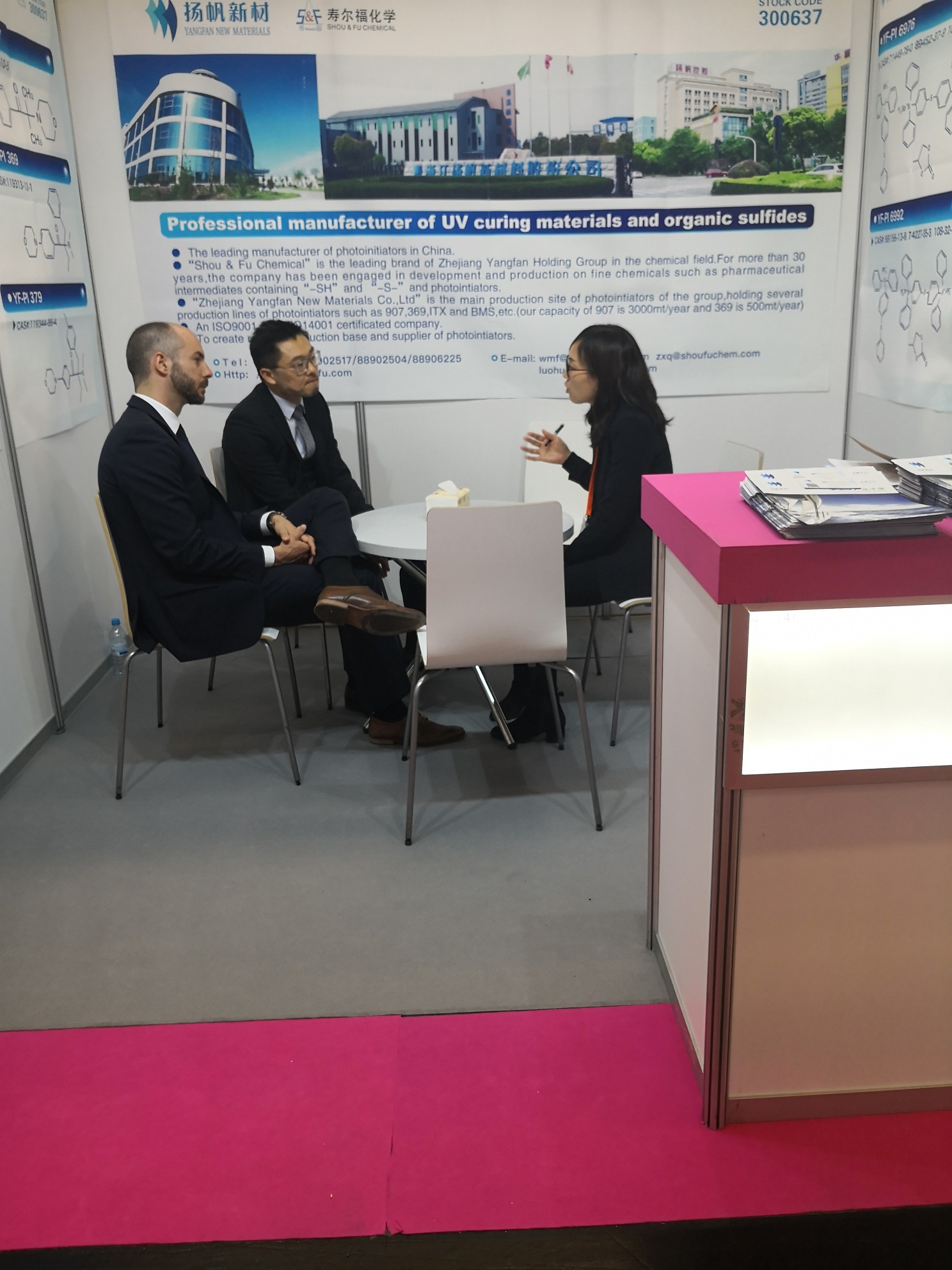 揚帆新材由總裁李耀土、副總裁朱俊飛率團參展。展會期間,公司眾多新老客戶接踵而至,積極洽談,針對內蒙古基地產能釋放、現有產品的生產技術改進以及新產品的開發等各方面問題與公司展開了深入交流。公司也借此進一步了解市場需求,獲取了更多的客戶反饋和建議,并在一些新項目上達成初步的合作意向。