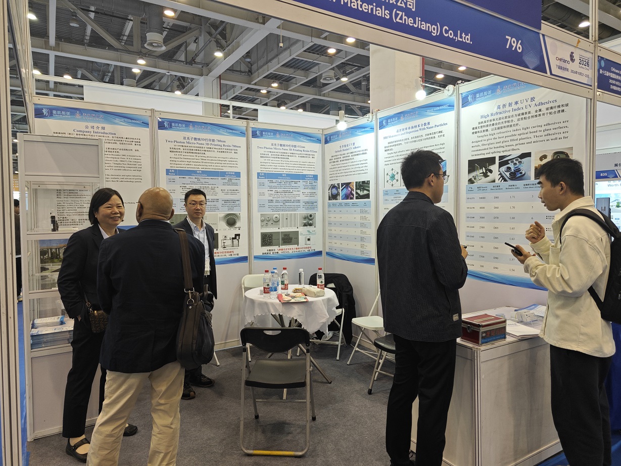此次展會上,揚帆新材重點展示了涵蓋高折射率UV膠、光學粘接UV膠、電子組裝用光固化材料、工業光固化粘合劑及3D打印光敏樹脂等在內的諸多核心產品。這些產品體現了公司在紫外光固化新材料領域的深厚技術積累和創新能力。