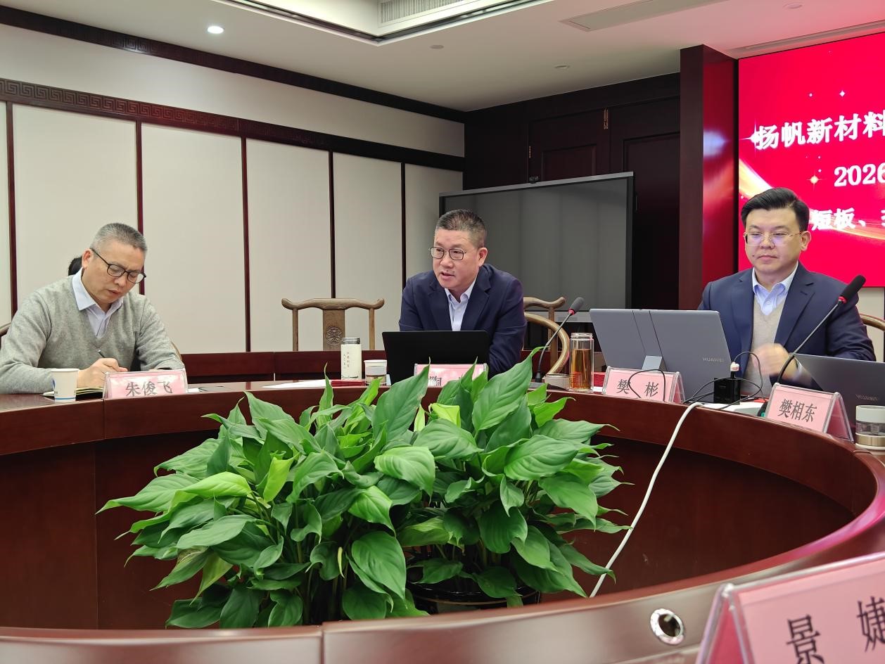2026年2月25日,揚帆新材料(浙江)股份有限公司杭州分公司開工茶話會在揚帆大廈盛大舉行。公司董事長樊彬,董事、總裁陶明,董事會秘書兼副總裁樊相東,副總裁朱俊飛、財務總監上官云明等經營班子成員及全體員工出席了此次會議。會議由樊相東主持。