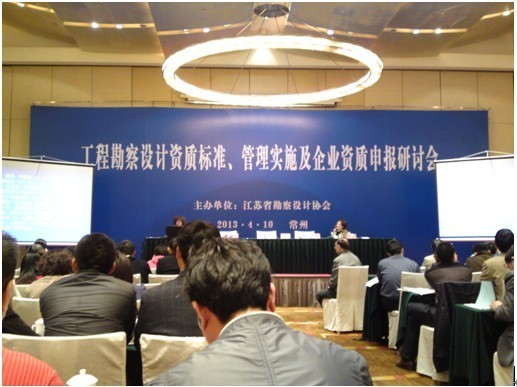 2013年4月10日,我公司董事長(zhǎng)靳兵、副總經(jīng)理馬斌等一行前往常州參加了江蘇省勘察設(shè)計(jì)協(xié)會(huì)舉辦的《工程勘察設(shè)計(jì)資質(zhì)標(biāo)準(zhǔn)、管理實(shí)施及企業(yè)資質(zhì)申報(bào)研討會(huì)》。