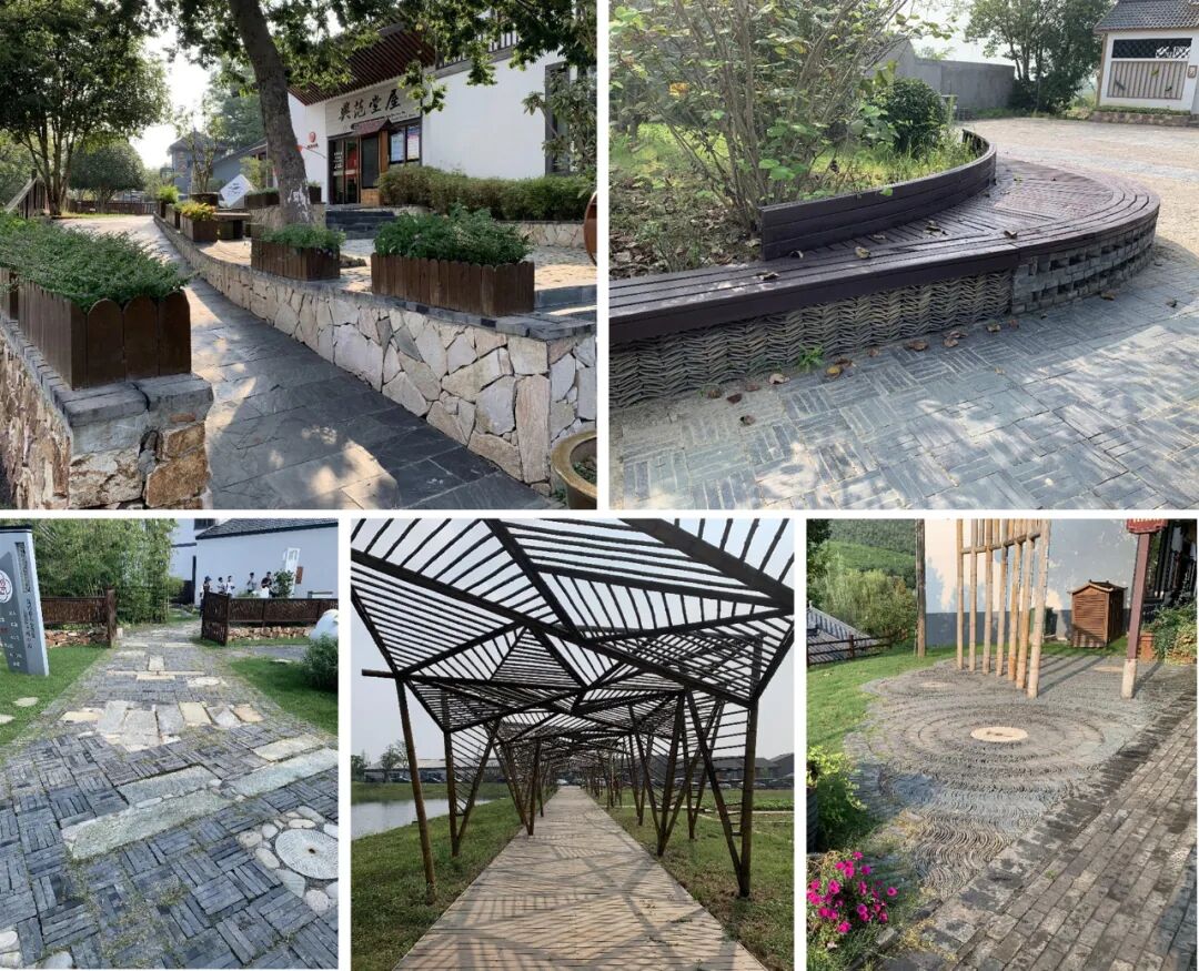 在鄉(xiāng)土景觀設(shè)計中,地方傳統(tǒng)材料是設(shè)計的首選,它們產(chǎn)自當(dāng)?shù)貧夂蚝偷乩憝h(huán)境下,是對地方特色的詮釋?,F(xiàn)代城市建設(shè)中,大量使用混凝土,瀝青,瓷磚,鐵,鋁,鋼筋,塑料等材料。這些材料隨著時間的推移很難產(chǎn)生年代美,而取材于當(dāng)?shù)氐牟牧?,如自然石材,磚瓦,竹,木材等能夠和周邊的自然環(huán)境融為一體,從而形成樸素生態(tài)的景觀。