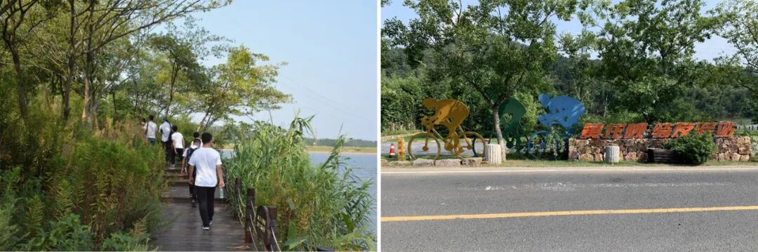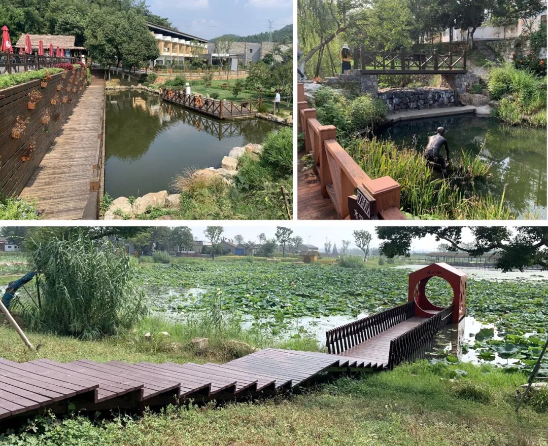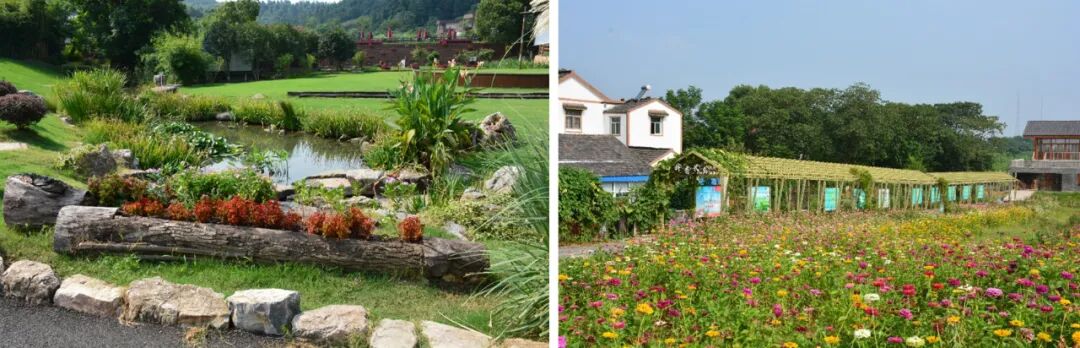 每個村莊都在打造自身環(huán)境特色的基礎(chǔ)上,搭配大量的草本花卉(百日菊、萼距花、藍(lán)雪花、香彩雀)、水生植物(水生美人蕉、香蒲、再力花、茨菇、荷花)、鄉(xiāng)土樹種(紫薇、枇杷、柿樹、榆樹)來營造自然生態(tài)、充滿野趣的綠化氛圍。村莊四周群山環(huán)繞、竹林簇?fù)?、碧波蕩漾,勾勒出一幅?yōu)美而恬靜的生態(tài)景觀圖,宛如一座美麗的世外桃源。