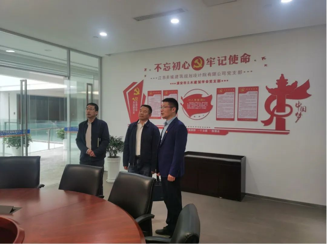 2023年4月25日上午,淮安經(jīng)濟(jì)技術(shù)開發(fā)區(qū)科教產(chǎn)業(yè)發(fā)展辦公室副主任、科教辦企業(yè)黨委書記王亞民一行蒞臨我司考察調(diào)研。江蘇美城建筑規(guī)劃設(shè)計(jì)院有限公司常務(wù)副總經(jīng)理、支部書記陳士軍帶領(lǐng)王書記一行,參觀美城辦公園區(qū),重點(diǎn)參觀黨建活動(dòng)中心,觀看了美城的宣傳視頻,隨后在我司三樓第一會(huì)議室進(jìn)行座談交流。