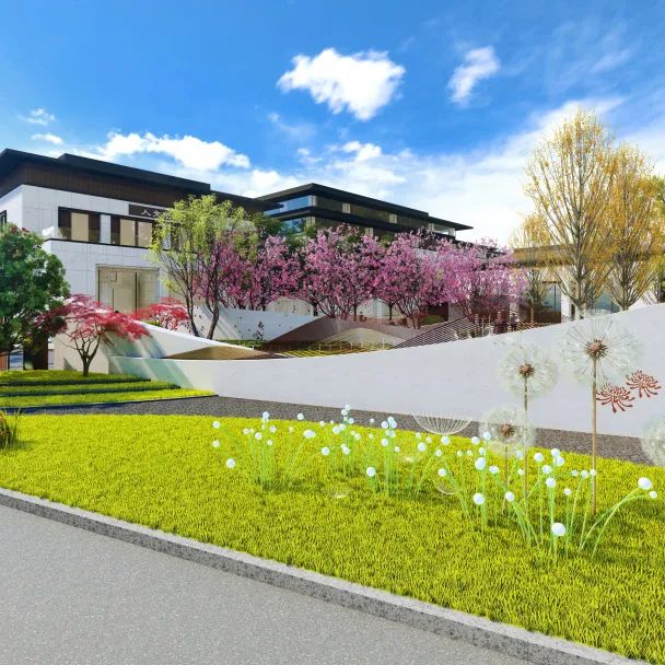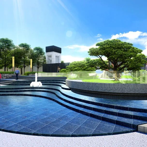 設計采用新江淮風格,方正硬朗的建筑與曲線舒展的景觀相得益彰,高高的燈塔與陣列的浮雕引導著靈魂的輕舟徐徐駛向故港;景觀以現(xiàn)代中式園林與原保留綠化相結(jié)合,主旨營造一處平和安寧之所,讓生命在暮色中安詳?shù)仫h落歸根,使逝者欣慰、生者無憾。